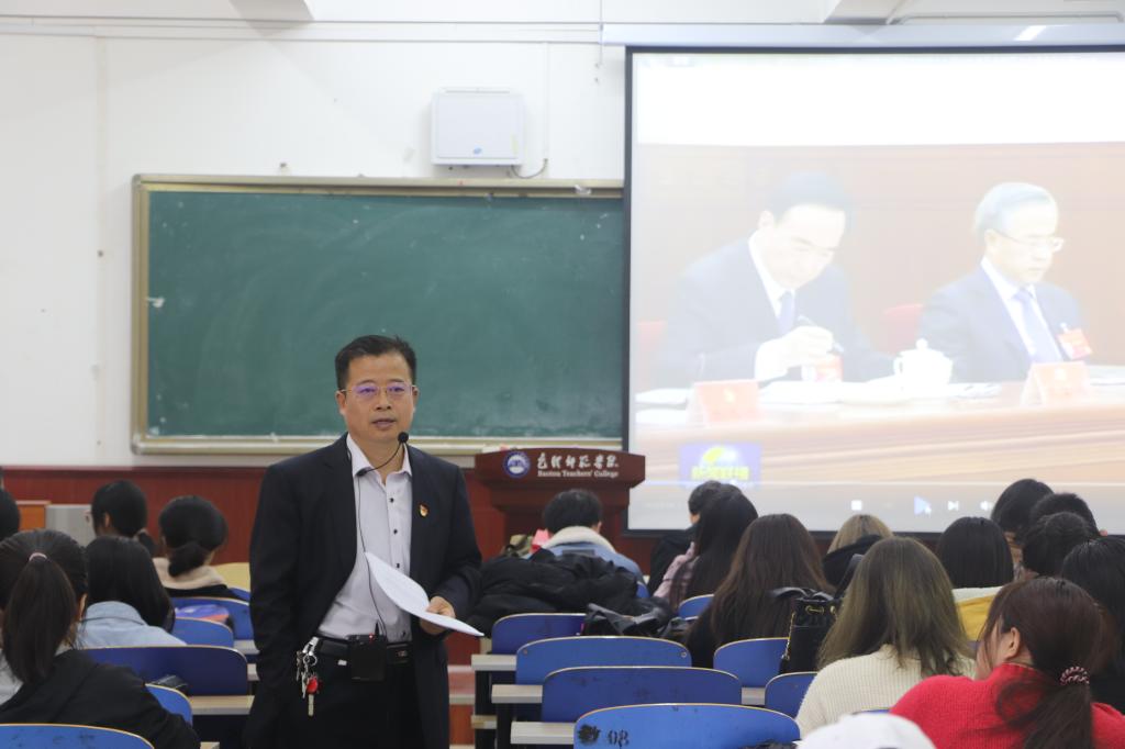 10月8日,郭宏升老师作了题为《从打赢疫情防控阻击战看中国特色社会主义的制度优势---学习十九届四中全会精神的一点体会》的专题讲座。郭老师以一首自创诗《打赢疫情防控攻坚战》引出当天的主题,接着老师具体分析了抗疫中的典型人物,让同学们看到共产党员身上应肩负的历史使命与时代担当。最后老师深刻解读了我国各项政治制度,以及这些制度在疫情期间发挥的积极作用。