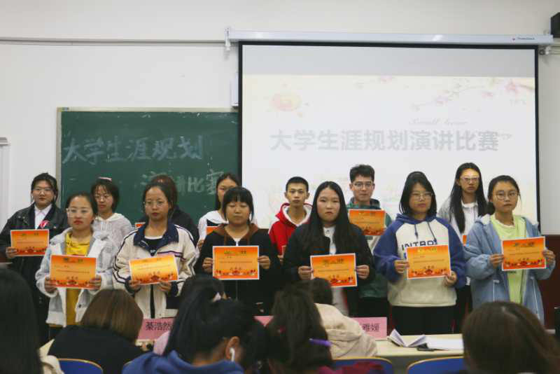 不同的学生有不同的想法,讲台上的他们将自己的大学生涯规划向观众以及评委展示。讲台上的同学都散发着经管学院的光芒,那一刻,他们就是主角。新颖的想法,清晰的谈吐,让评委听的入了迷。比赛没有真正的胜负,每一位参加比赛的人都打败了曾经的自己。这场比赛真正达到了让学生树立大学生活目标,为将来的生涯进行规划的目的。比赛十分激烈,各位评委本着公平公正的原则为每一位参赛选手评分,最终产生了两名一等奖,四名二等奖,五名三等奖以及优秀学生若干。整场活动进行的有条不紊,欢乐和谐,在主持人精彩的的祝福语中此次演讲比赛落下帷幕。比赛结束后,工作人员与现场参赛人员合影留念。