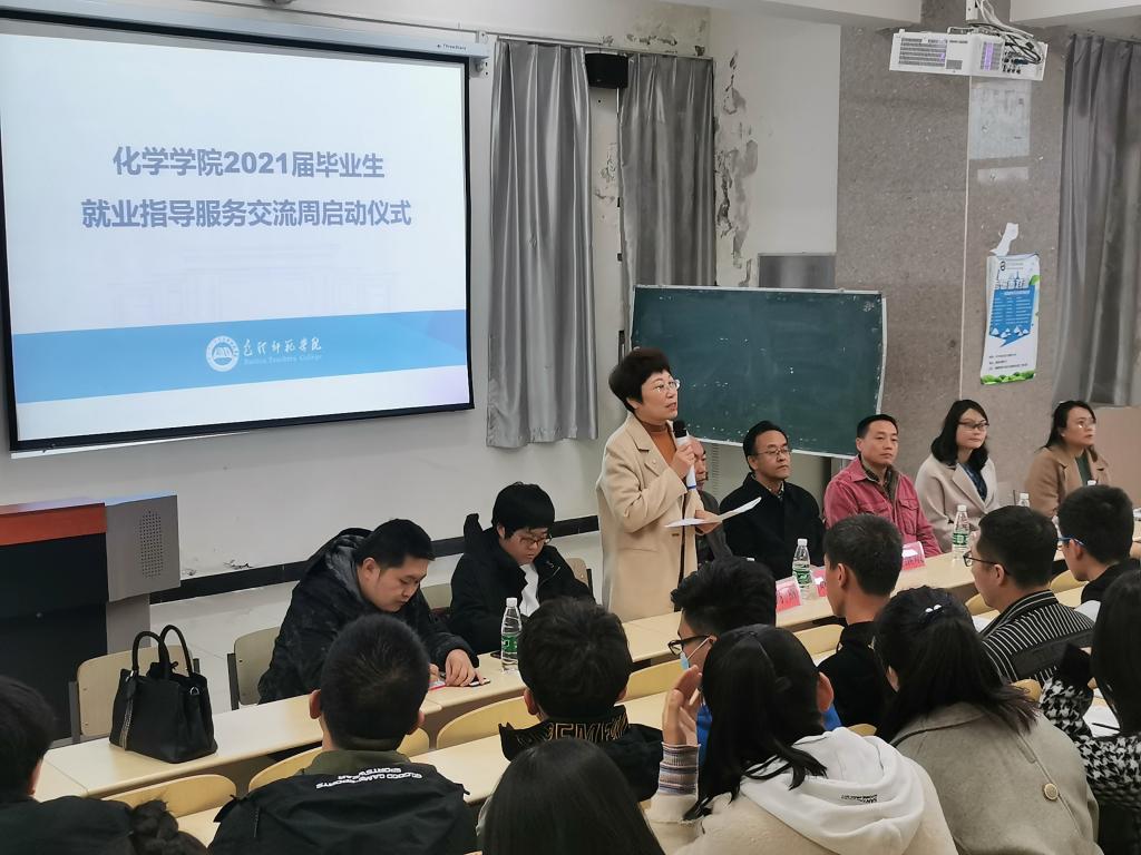 为了进一步加强对毕业生的就业指导,规范毕业生的学业行为,化学学院于10月29日上午在新逸夫楼124举行2021届毕业生就业务交流指导大会启动仪式,学院领导、团学干部和全体毕业生近160人参加了此次活动。冯丽副书记主持了启动仪式。